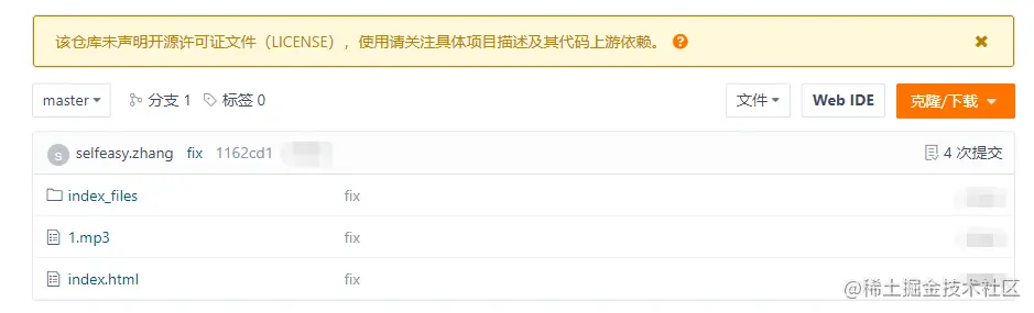 点击右上的“克隆/下载”,将这个网页存放到本地电子设备上,并进行解压,我们就能得到列表中所显示的网页运行相关文件。