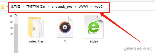 然后将这些文件,都复制到PHPStudy软件的网页目录下。具体位置为(D:\phpstudy_pro\WWW),此处的(D:)为软件安装的磁盘号(为避免权限冲突,PHPStudy最好不要安装在C盘或系统盘下);而WWW文件夹,就是PHPStudy的网页文件存放文件夹。在这个例子中,为避免建立的网页混淆,因此在WWW文件夹下新建了“web2”文件夹,用以存放该网页的各项文件。