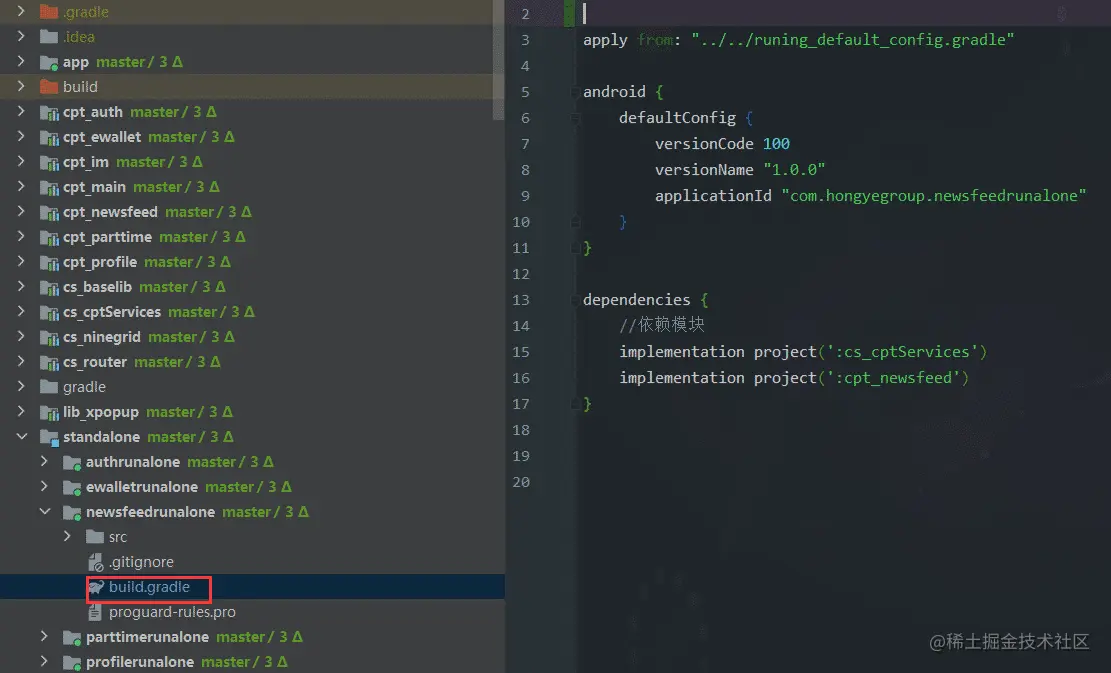 最后,如果NesFeed模块是独立运行的,那么App模块不可能依赖一个Application吧。所以App的Build.gradle中也得修改: