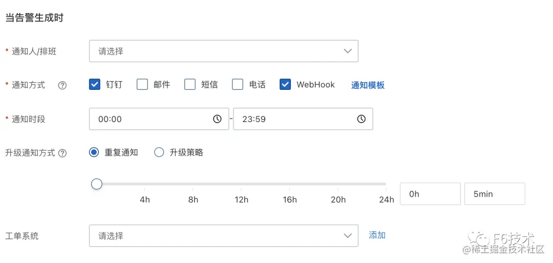 经过一段时间的调研,我们最终选择阿里云的《ARMS 告警运维中心》来负责告警的管理。ARMS 告警运维中心支持接入 Prometheus 数据源,支持添加钉钉群机器人作为联系人。