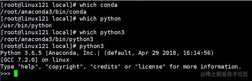 注意:如果之前服务器上已经编译安装过python了,将它重命名,否则系统会自动找到之前编译的python3环境,而不会使用Anaconda里的python环境。