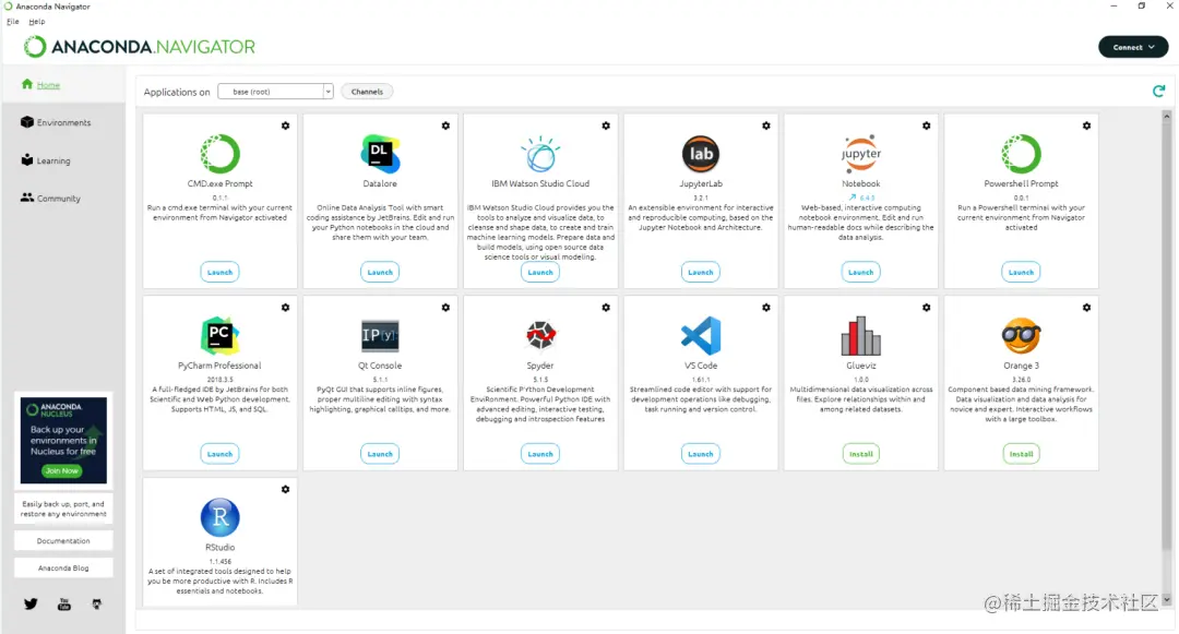 比如在windows中,安装完成后,点击Anaconda Navigator