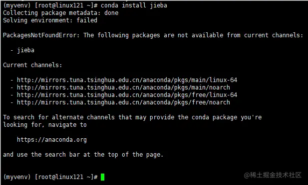 运行 conda clean -i 清除索引缓存,保证用的是镜像站提供的索引。