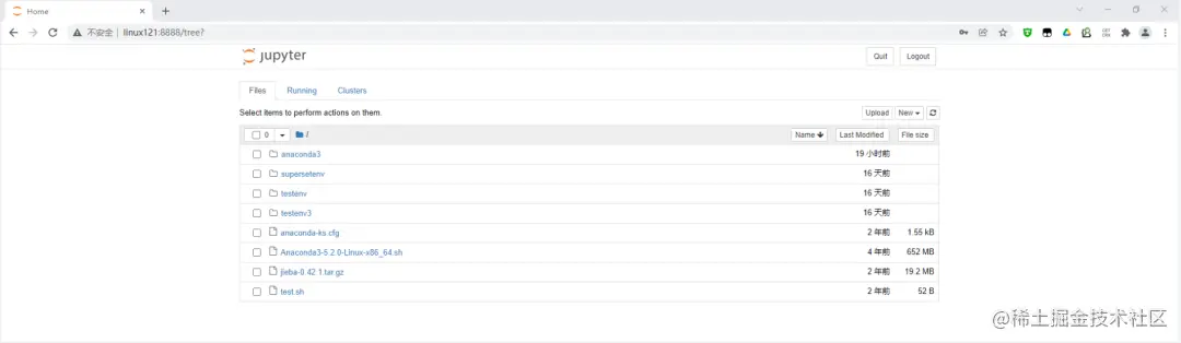 输入地址:(配置好hosts映射)http://linux121:8888/