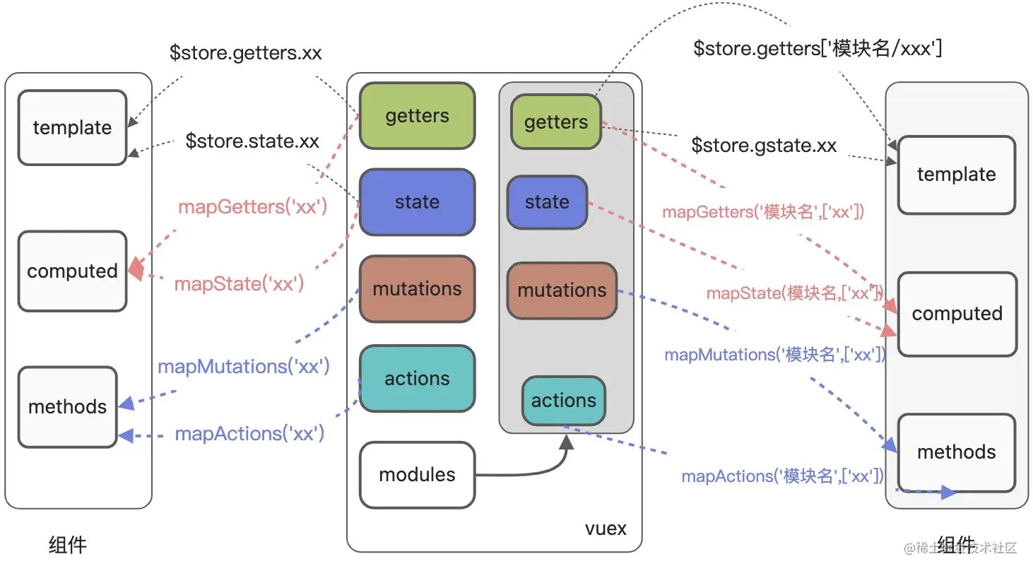 ...mapGetters('模块名',{'新名字': 'xxx'})