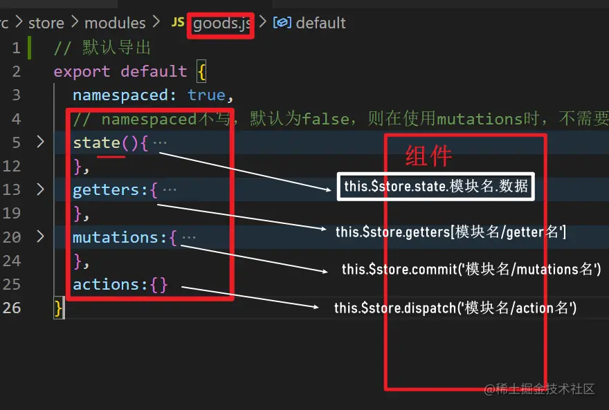// namespaced为true,则在使用mutations时,就必须要加上模块名