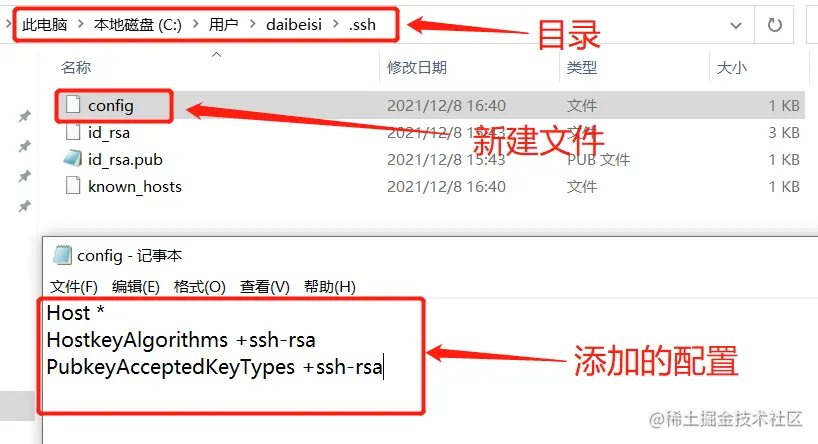 具体做法:到当前用户目录下的.ssh文件中创建config文件(config没有后缀),使用记事本打开添加如下