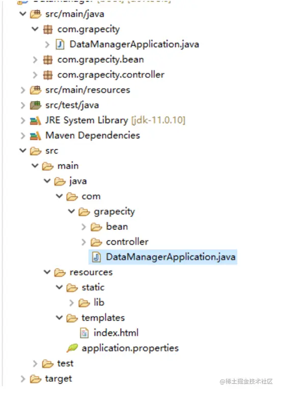 2、构建前后台,可以选择前后端分离,或者结合的方式(例子中选中了前后端结合的方式),大致工程结构如下: