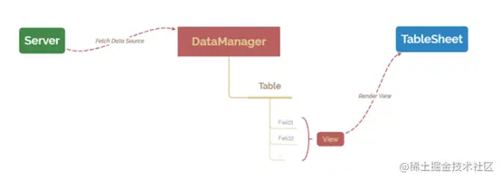 为了让前端的表格不但具备类Excel的公式计算能力,同时还拥有传统表格控件的高性能,我们希望将传统的高性能结构化表格 (Grid) 与公式计算引擎 (CalcEngine)结合在一起。 为了实现这样的设计,我们首次提出了数据管理容器 (DataManager) 的概念,将原有在后端才具备的关系数据引擎,完全在前端实现,从而实现了在大量数据(百万行)的环境下,实现秒级的加载、排序、筛选,而这所有的操作,都能够完全在前端浏览器中,通过JavaScript 代码实现。 数据管理容器 (DataManager)不仅承担了数据存储与索引的功能,同时还实现了多数据表关系、视图、CRUD等功能。 集算表(TableSheet)则负责将数据管理容器 (DataManager)中整理好的数据、视图、关系,通过SpreadJS 本身的"Canvas画布"呈现在网页中。
