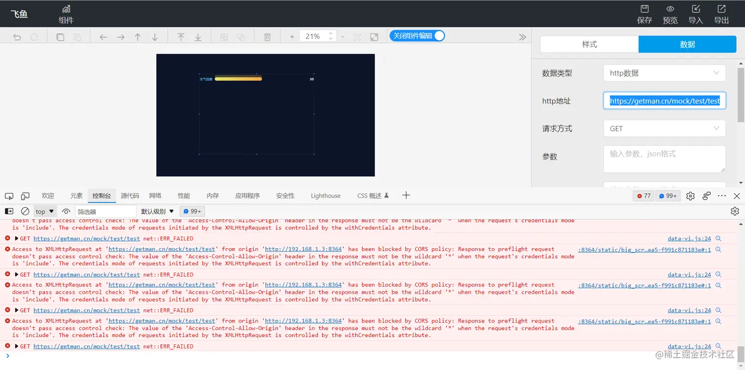 A7:开源版本跨域问题需自行使用代理等方式解决,飞鱼企业版内置数据源管理也可解决跨域问题