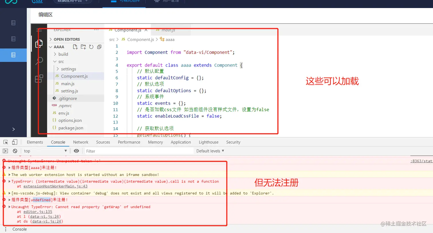 A10:组件需编译成功才能显示,请检查js代码是否正确。