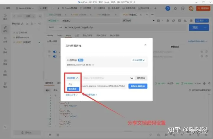 值得一提的是,我们同时支持分享文档、分享项目和自定义分享大家可以根据自己的需求进行选择。另外,有些伙伴对数据保密性要求比较高,可以通过设置文档查看时效和密码来保障数据的安全性。
