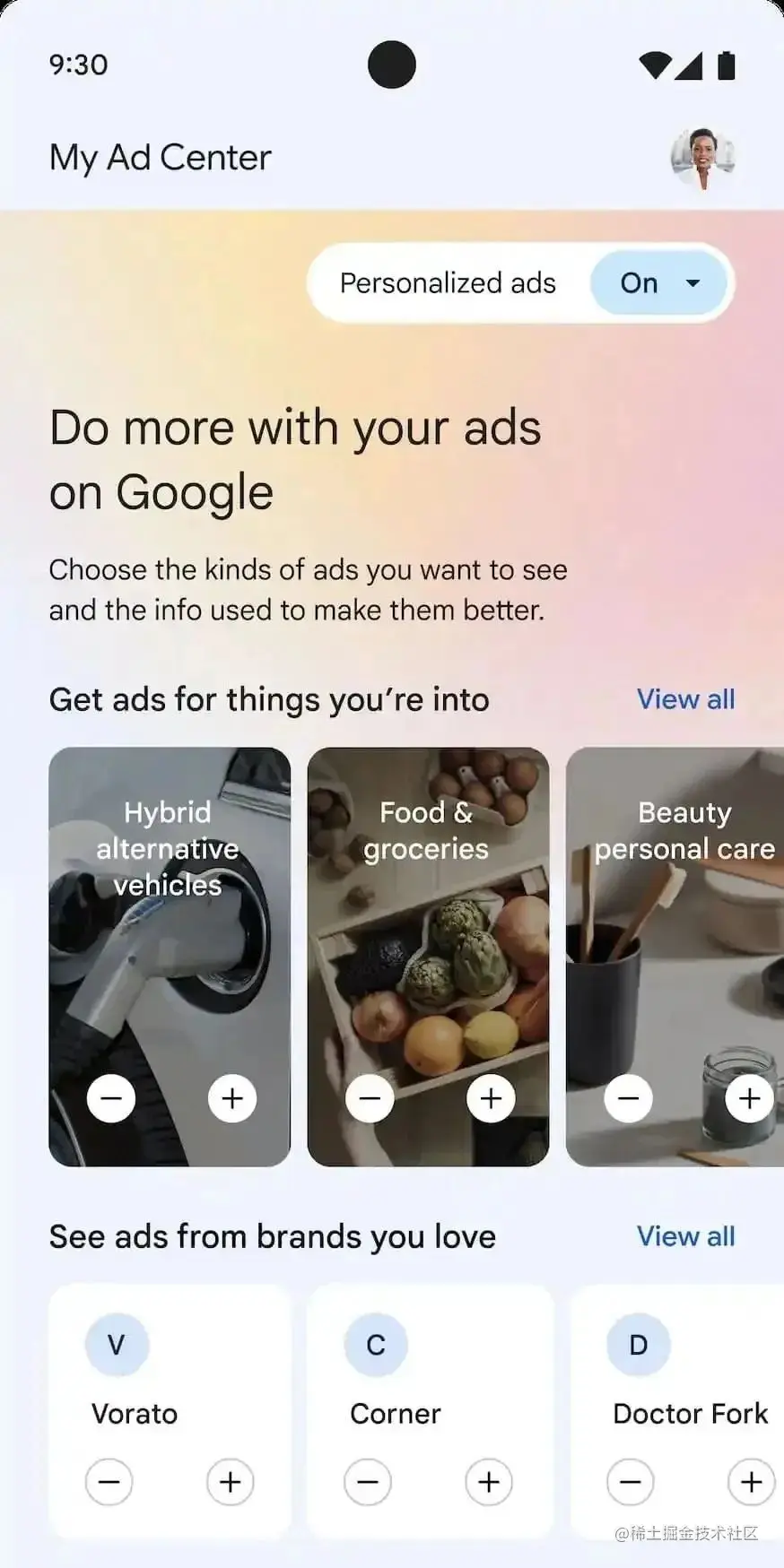 其中,一个叫做“我的广告中心”的新隐私工具,让用户能够更自由地选择自己在谷歌产品中接触到的广告信息: