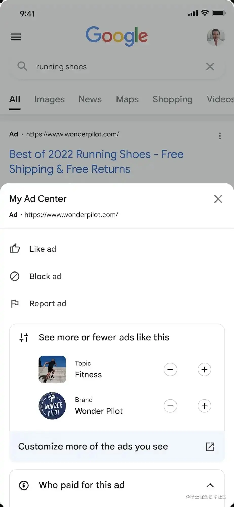 对广告主来说,最大的变化则在于,控制功能让广告的透明度更高了。过去谷歌广告中的“About this Ad”正在被新功能“Who paid for this ad”取代,用户能够更为了解为什么他们会收到某一则广告。
