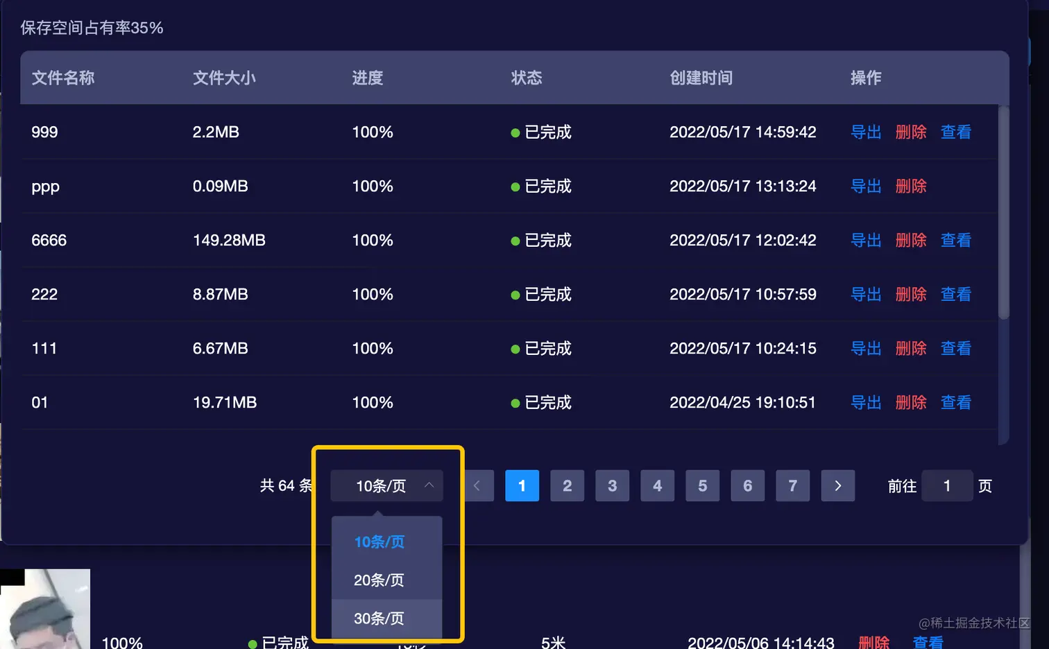 先来说一下Dropdown下拉菜单的交互效果,就是鼠标click/hover展示菜单内容,当鼠标滑过,菜单就消失,这样当我们想点击分页的时候,使用传统的elementui分页组件如果在菜单的最底部,分页下拉框已经超出菜单内容体,这下就没法点击了。如下图~