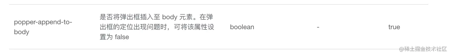 - 要实现菜单中分页,如果自己写一个分页组件稍微有点麻烦。所以还是使用了elementui中的pagination分页组件,但是问题的重点是下拉框!我们为什么会在下拉框选择的时候,让菜单消失呢,说明弹出框内容已经不属于菜单内容啦。看官方文档的时候,突然发现select组件有一个popper-append-to-body属性。如果把这个属性设置为false,是不是说明弹出框不会属于body,而属于我们的菜单页,这样我在自己的区域操作,总不会让惨淡内容消失了吧。