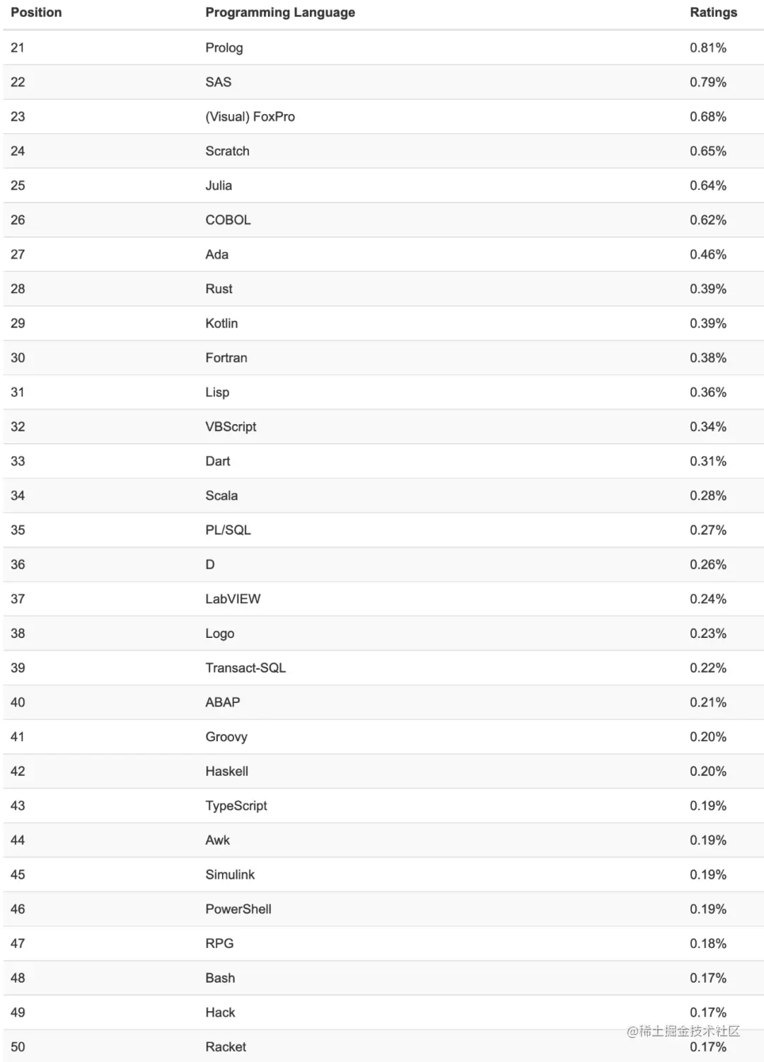 下面列出了完整的 21-50 名,因为是非官方发布的,所以可能存在遗漏: