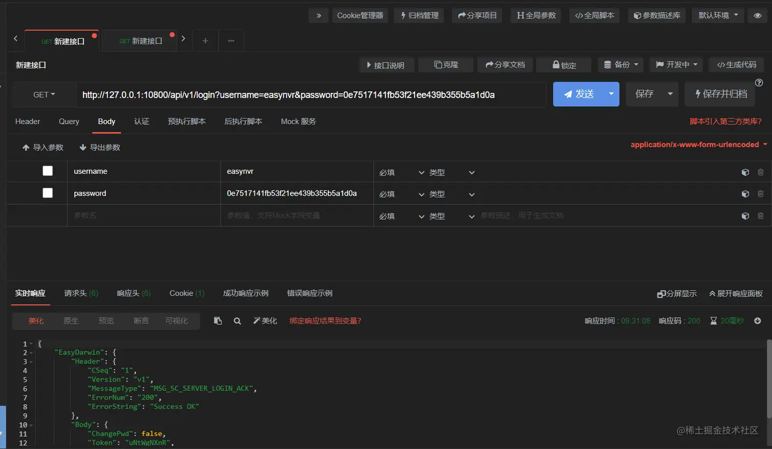 1)首先,调用登录接口获取token: