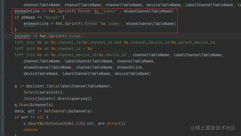 3)在接口处打上断点,发现在查询数据库时,报Mysql语法错误,如下: