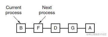 多级队列是为这种需要连续执行多个时间片的进程考虑,它设置了多个队列,每个队列时间片大小都不同,例如 1,2,4,8,..。进程在第一个队列没执行完,就会被移到下一个队列。这种方式下,之前的进程只需要交换 7 次。