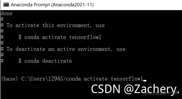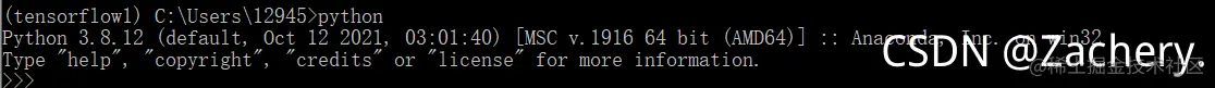 此命令表示:新建一个名叫tensorflow1的环境,使用python3.8版本