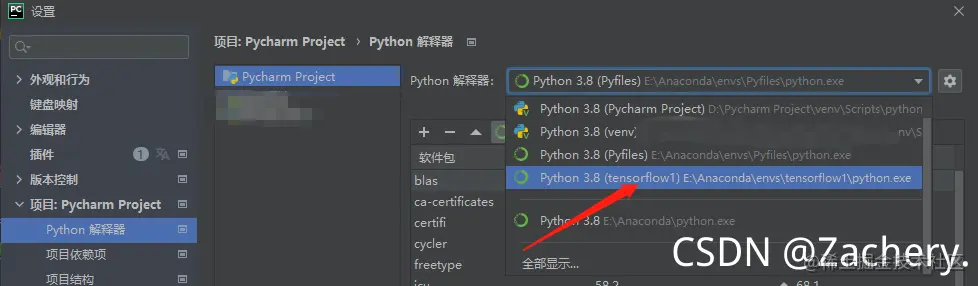3、选择好项目文件夹>选择刚刚新建好的tensorflow1环境中的python作为解释器>点击确认