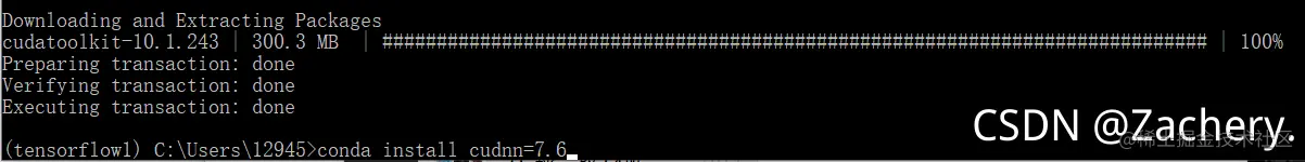 6、输入以下命令,安装英伟达深度学习软件包7.6版本