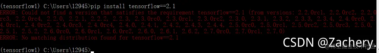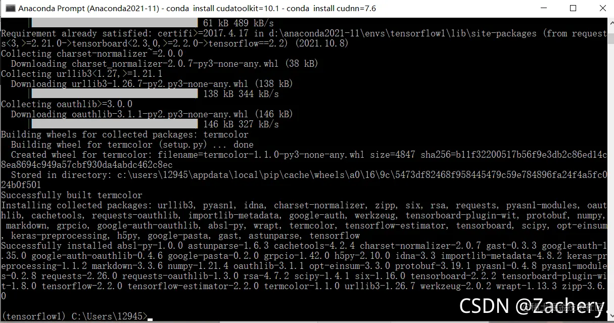 注:如果上面两条安装语句报错了,大概率是因为使用的电脑不支持英伟达GPU,则可以跳过这两步,直接安装tensorflow。