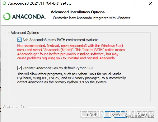 注意:此处要勾选第一项Add Anaconda3 to my PATH environment variable