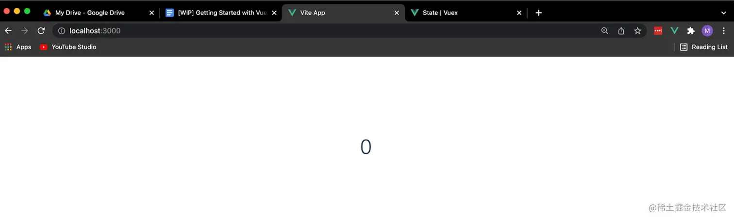 太棒了——如果我们现在查看我们的页面,我们会看到我们的组件通过 Vuex 正确地提取了我们的价值。