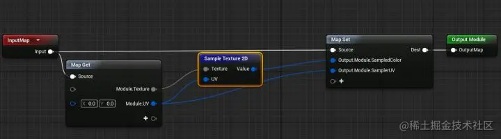 点开进去是这样,其实非常简单。根据给定的 UV 值,对贴图进行采样,然后将采样的颜色储存到 SampleColor 属性中,将这次 UV 储存到 SampleUV 中。所以,我们可以通过遍历 UV 来对图片上的颜色进行保存,可以随机遍历也可以顺序遍历。