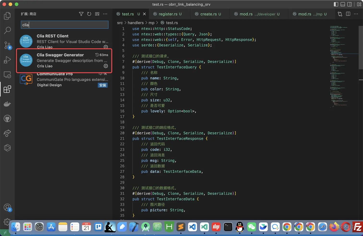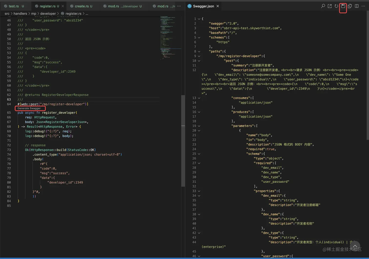 这是一个提高工作效率的VSCode插件,能够从使用Rust开发的后台接口,一键生成Swagger文档,然后可以导入YAPI中,快速创建接口的文档。