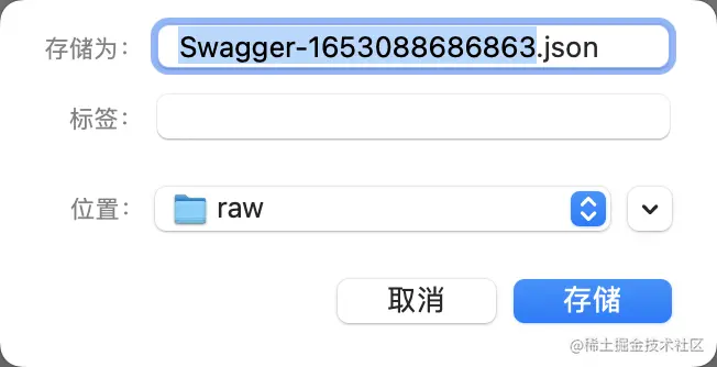 在文档上点一下“Save Swagger.json”按钮,就可以保存文档,保存时自动添加时间戳。