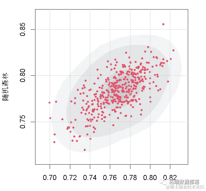 第二张是高密度等高线图,给我们提供了数据的概率区域。