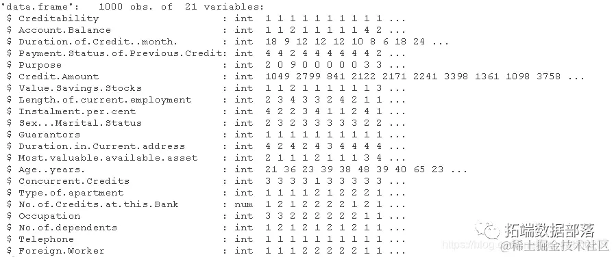 信贷数据集,其中包含了银行贷款申请人的信息。该文件包含1000名申请人的20条信息。