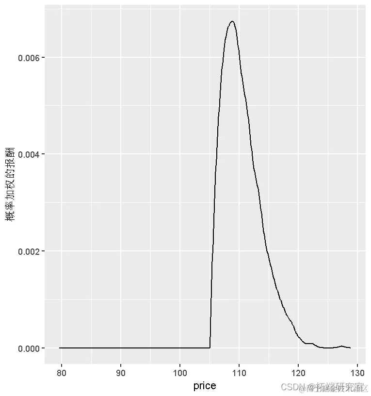 最后,我们可以通过对概率加权收益曲线下的面积求和来获得期权的期望值: