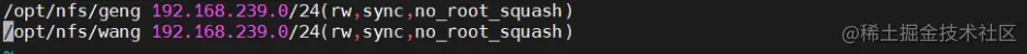 /opt/nfs/geng 192.168.239.0/24(rw,sync,no_root_squash)