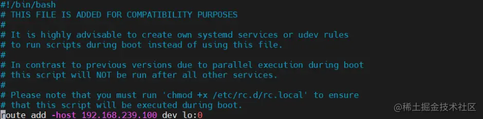 #将设置路由命令添加到开机执行配置文件内相当于开机自启并给配置文件添加执行权限