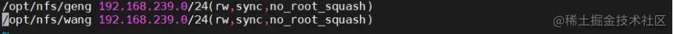 /opt/nfs/geng 192.168.239.0/24(rw,sync,no_root_squash)