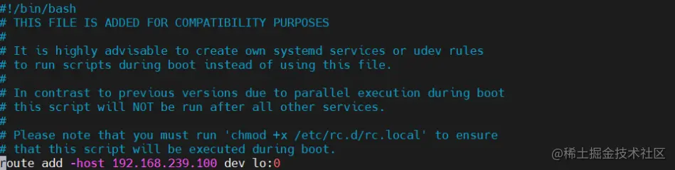 #将设置路由命令添加到开机执行配置文件内相当于开机自启并给配置文件添加执行权限