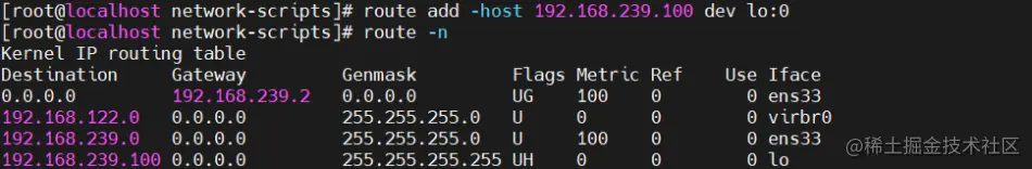 route add -host 192.168.239.100 dev lo:0