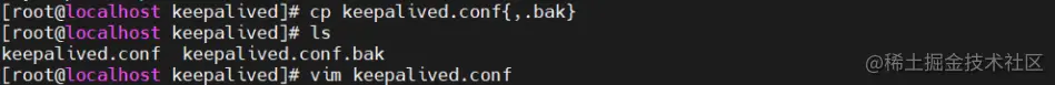 cp keepalived.conf{,.bak} #备份原有配置文件