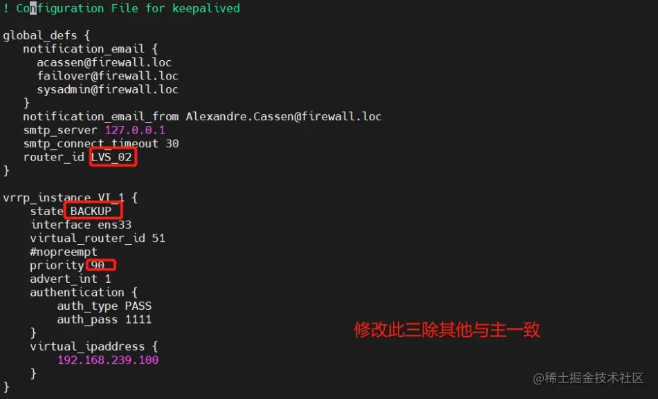 与主配置一致唯一不同keepalived配置文件