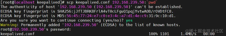 scp keepalived.conf 192.168.239.50:`pwd` #远程传输文件到备负载调度器