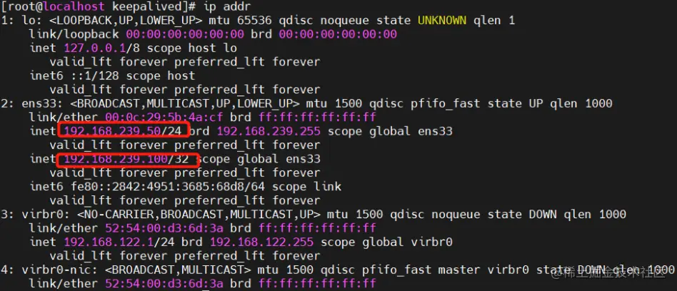 ip addr #查看虚拟网卡vip