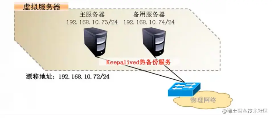 - 双机热备的故障切换是由虚拟P地址的漂移来实现,适用于各种应用服务器