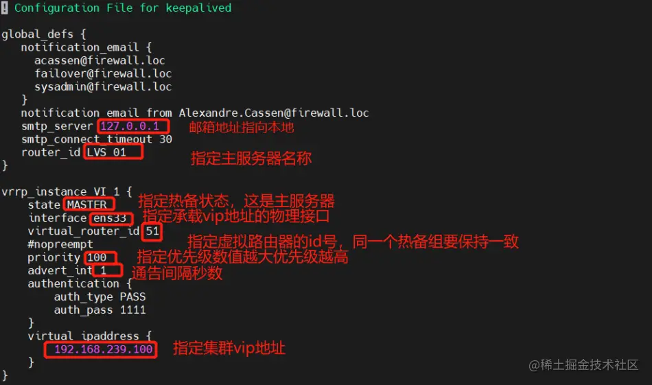 - Keepalived配置目录位于/etc/keepalived/
