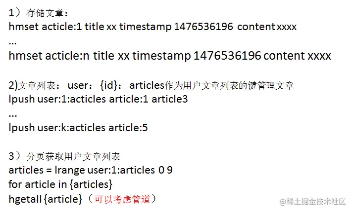 | 列表(list) | lpush+lpop=Stack(栈) lpush+rpop=Queue(队列) lpush+ltrim=Capped Collection(有限集合) lpush+brpop=Message Queue(消息队列) | 如阻塞队列,关注列表 |