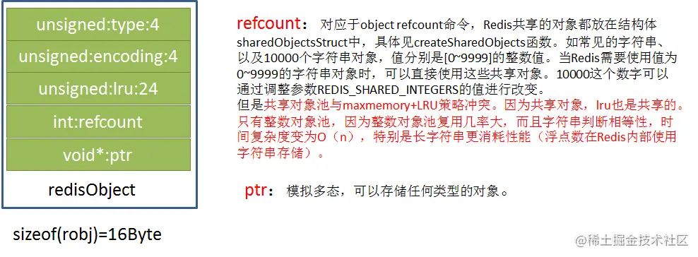 | embstr | 1.只分配一次内存空间,因此robj和sds是连续的;2.只读;3.Embstr字符串需要修改时,会转成raw,之后一直为raw | 1.创建和删除只需要一次; 2.寻找速度快 | 1.重分配涉及到robj和sds整个对象,因此embstr是只读的 |