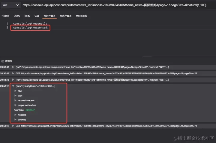 一个请求所有的响应参数组成的对象。只能用于后执行脚本(发送了才有响应)。我们在后执行脚本可以打印查看并使用该变量。 数据结构例子